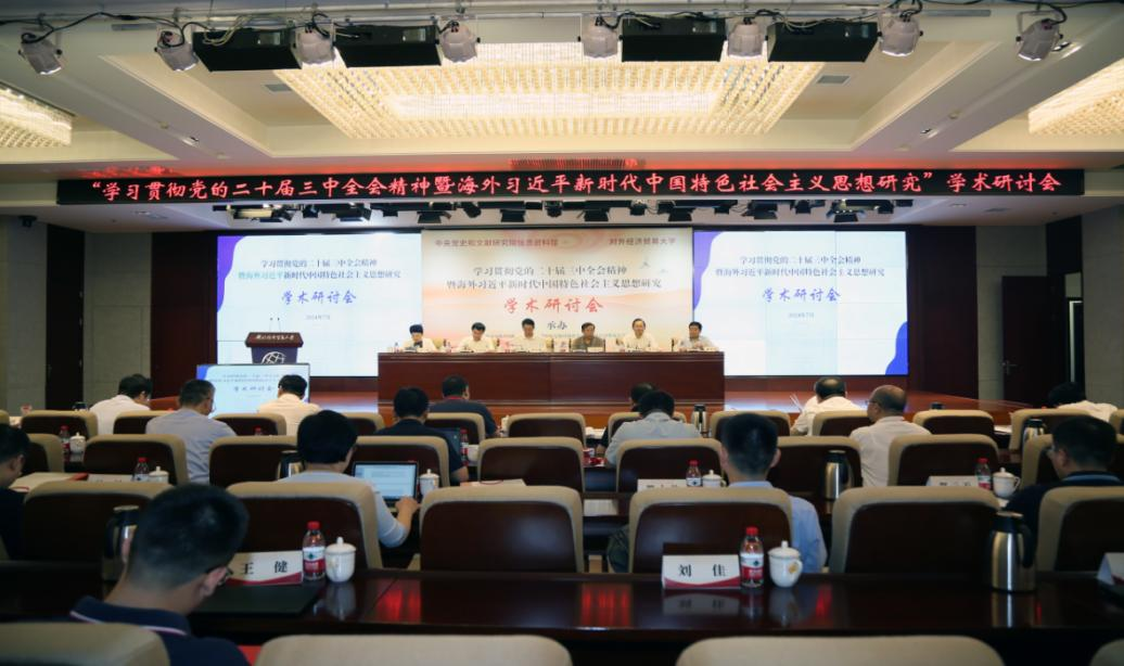 7月31日,由中央黨史和文獻研究院信息資料館、對外經(jīng)濟貿(mào)易大學聯(lián)合主辦,北京高校中國特色社會主義理論研究協(xié)同創(chuàng)新中心(對外經(jīng)濟貿(mào)易大學)、《國外理論動態(tài)》雜志編輯部聯(lián)合承辦的“學習貫徹黨的二十屆三中全會精神暨海外習近平新時代中國特色社會主義思想研究”學術研討會在北京舉行。中央黨史和文獻研究院副院長、中央編譯局局長季正聚,對外經(jīng)濟貿(mào)易大學黨委書記黃寶印出席開幕式并致辭。中央對外聯(lián)絡部原副部長于洪君應邀出席。中央黨史和文獻研究院信息資料館館長許先春等參加會議。會議開幕式由對外經(jīng)濟貿(mào)易大學黨委副書記、副校長文君主持。