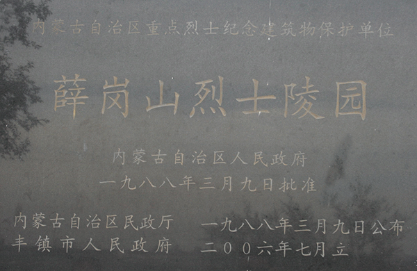 1988年3月9日,薛崗山烈士陵園被內(nèi)蒙古自治區(qū)人民政府公布為重點革命烈士紀念建筑物保護單位;1995年10月,被中共豐鎮(zhèn)市委公布為愛國主義教育基地。