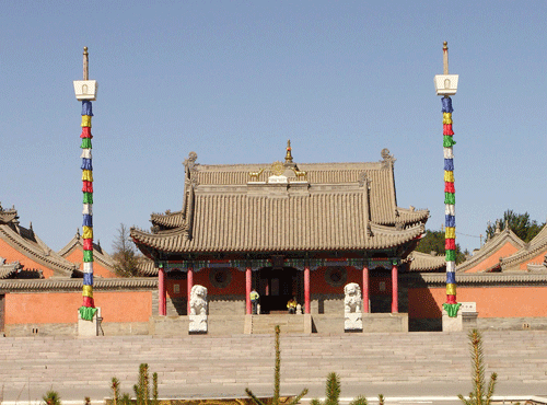 ??? 貝子廟位于錫林浩特市寶力根街道辦事處貝子廟廣場(chǎng)北側(cè),始建于1743年(清乾隆八年),漢名崇善寺,蒙古名為班智達(dá)葛根廟,內(nèi)蒙古革命領(lǐng)導(dǎo)人烏蘭夫、王鐸、奎璧、王再天等同志曾在此戰(zhàn)斗生活過。在解放戰(zhàn)爭(zhēng)時(shí)期,貝子廟成為中共錫林郭勒盟、察哈爾盟,巴彥塔拉盟和烏蘭察布盟工委所在地。中國共產(chǎn)黨在這里培養(yǎng)了大批革命干部,成為內(nèi)蒙古重要的革命根據(jù)地和內(nèi)蒙古自治運(yùn)動(dòng)聯(lián)合會(huì)最早開展工作的地區(qū),數(shù)百名烈士犧牲在這片土地上。
