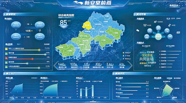 為深入學習宣傳貫徹黨的二十大精神,浙江杭州建德市推出“新安堂前燕”數字化應用場景2.0版,以數字賦能提升基層理論宣講成效。圖為“新安堂前燕”數字駕駛艙。 建德市委宣傳部供圖