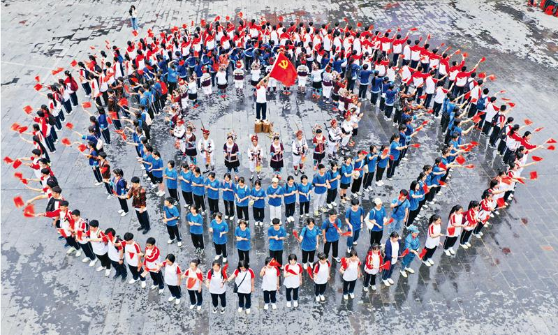 廣西柳州三江侗族自治縣采用群眾喜聞樂見的方式方法,把紅色資源作為生動(dòng)教材,推動(dòng)黨史學(xué)習(xí)教育深入群眾、深入基層、深入人心。圖為2021年5月17日,當(dāng)?shù)厝罕娫诤铣稕]有共產(chǎn)黨就沒有新中國》。 人民視覺 龔普康/攝