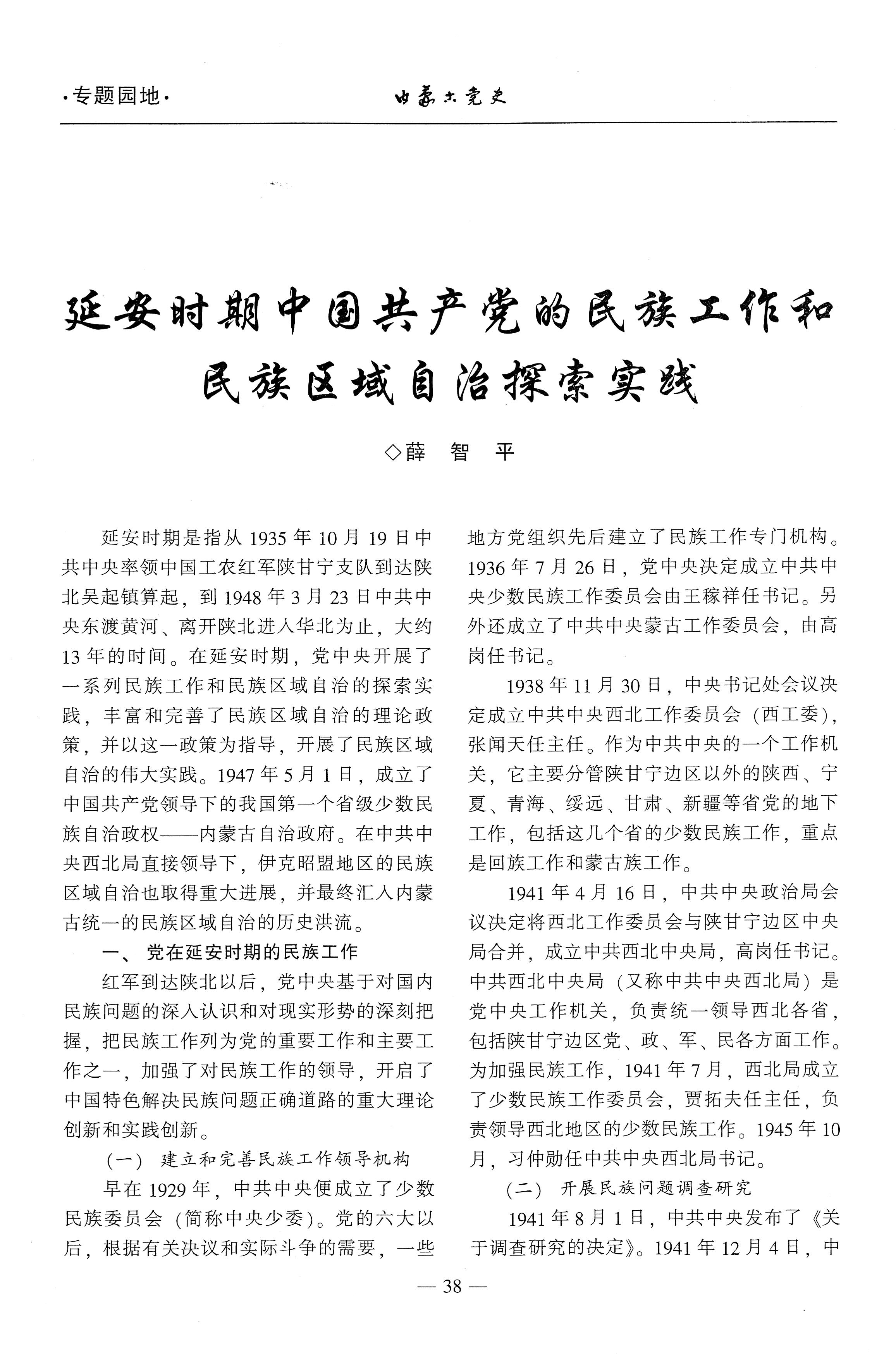 延安時(shí)期中國共產(chǎn)黨的民族工作和民族區(qū)域自治探索實(shí)踐