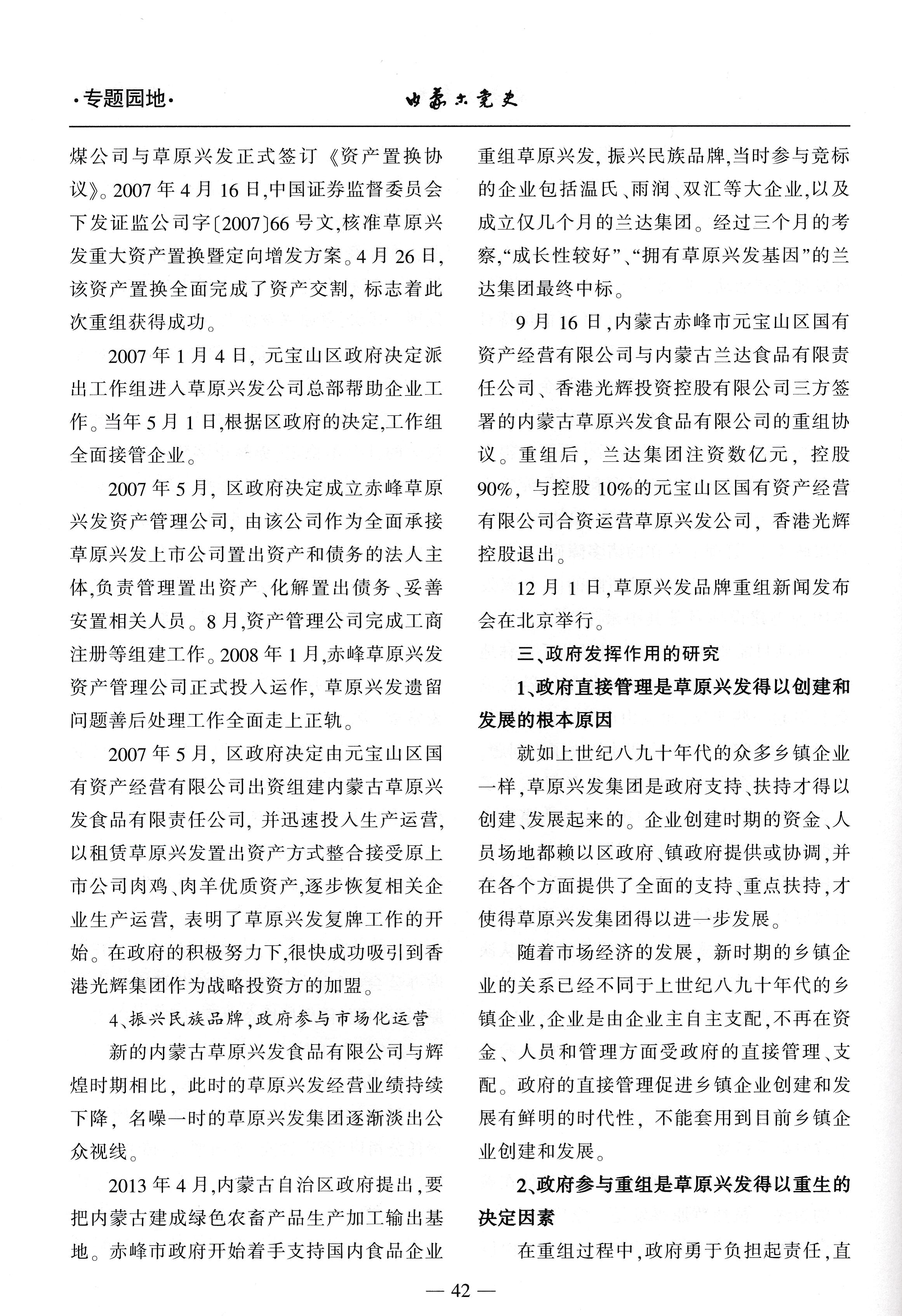 政府在草原興發(fā)集團(tuán)創(chuàng)建和發(fā)展中發(fā)揮作用的研究
