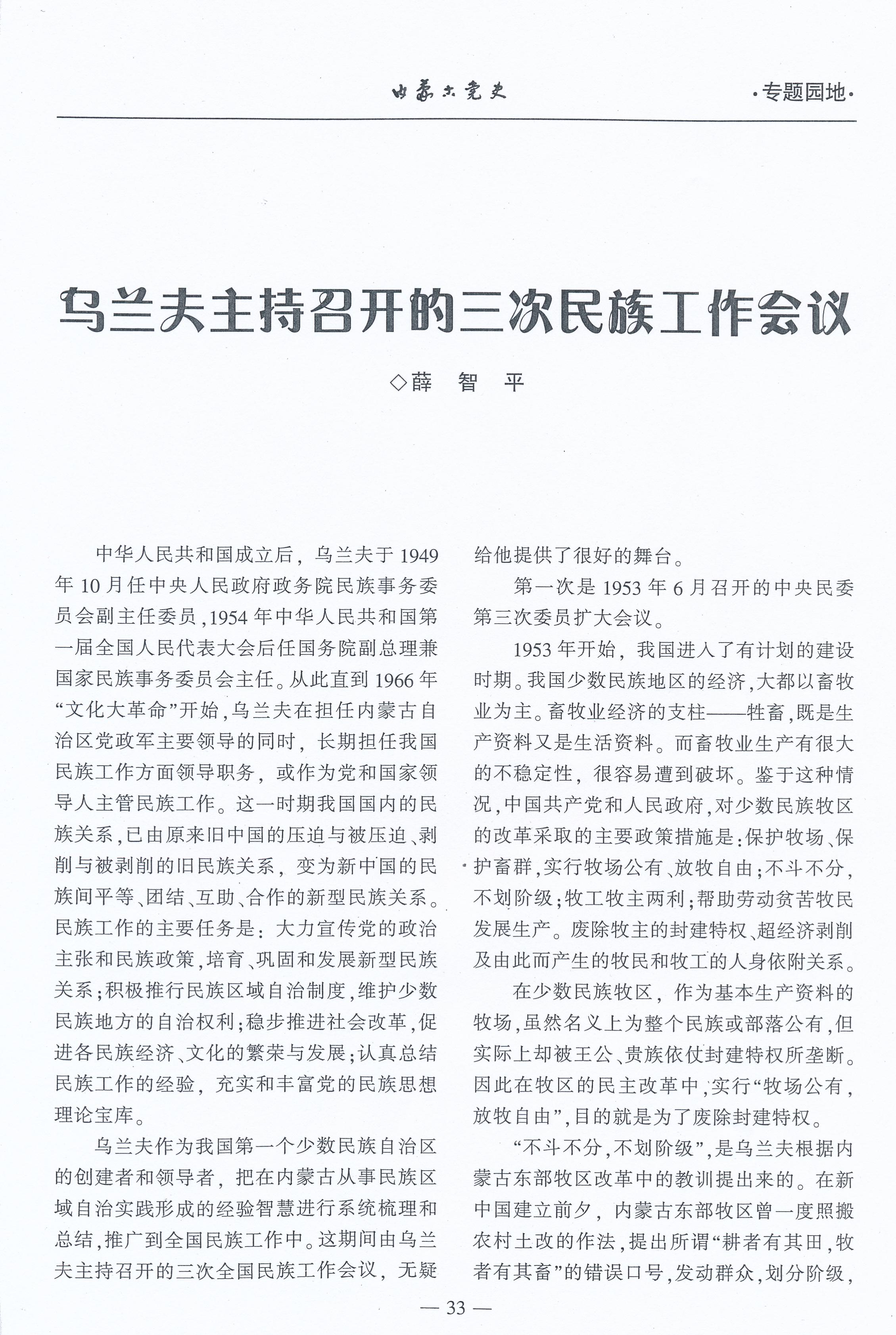 烏蘭夫召開的三次民族工作會議