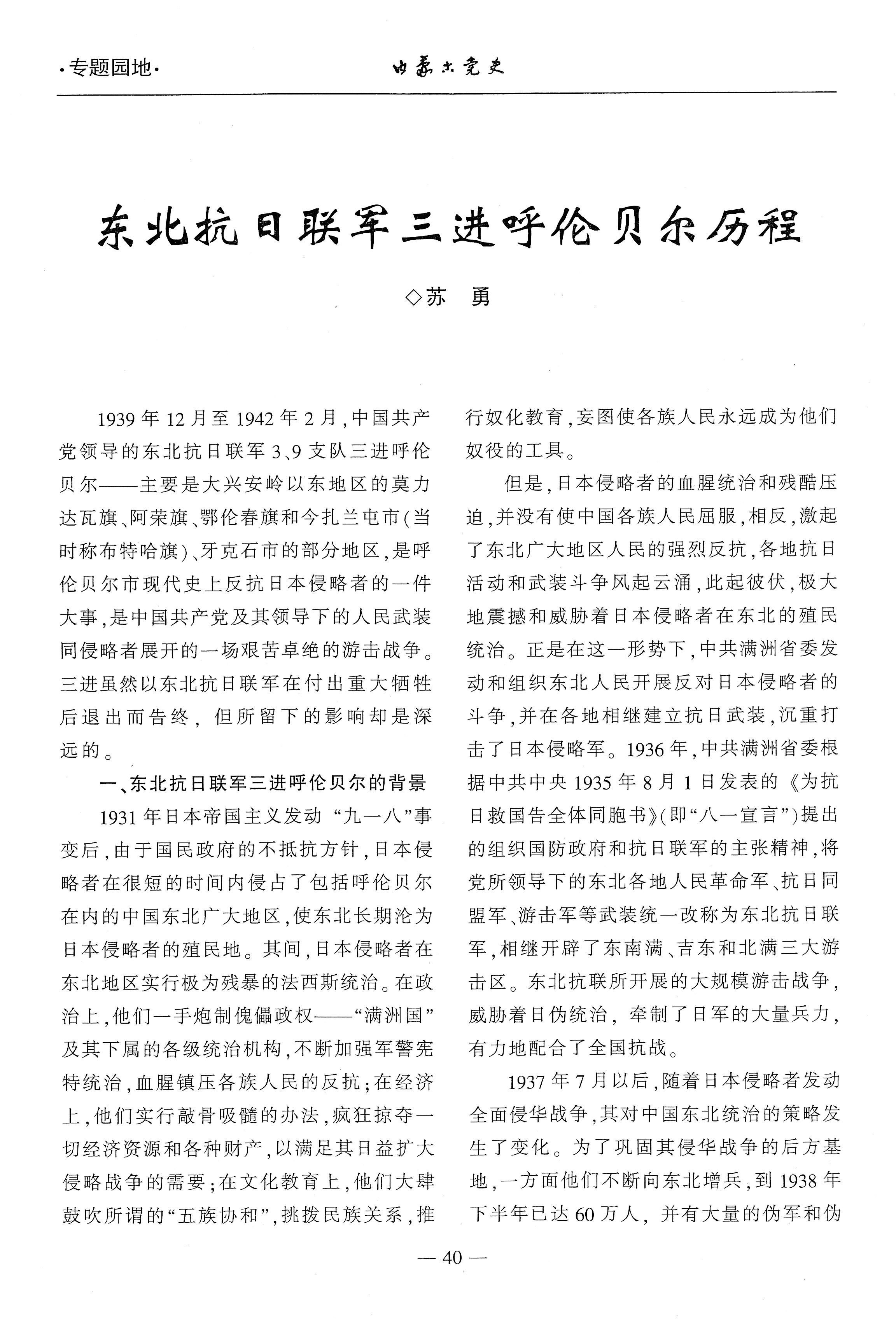東北抗日聯(lián)軍三進呼倫貝爾歷程