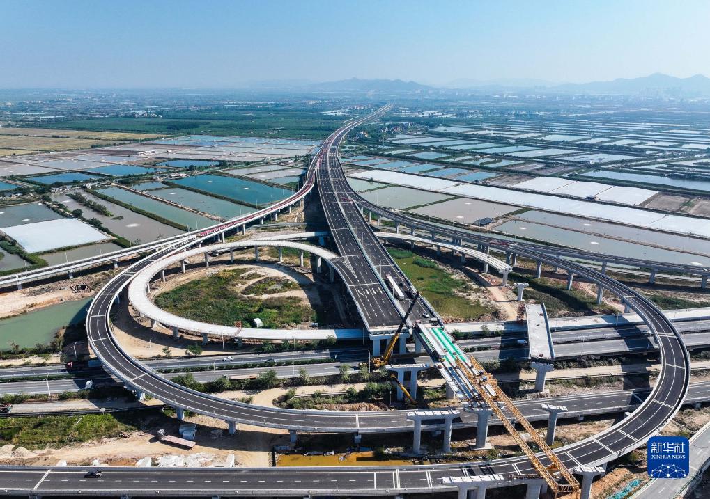 這是廣東鶴港高速高欄港樞紐(2023年12月8日攝,無人機(jī)照片)。新華社記者 劉大偉 攝