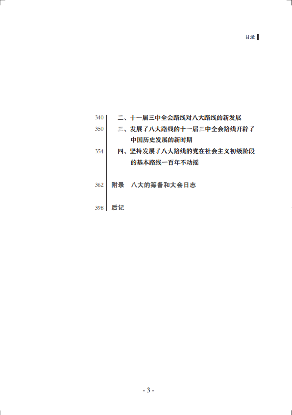 《中共八大史》介紹了中共八大召開的國內(nèi)和國際背景、大會的籌備特別是大會重要文件的準(zhǔn)備經(jīng)過以及大會召開的過程,評價了大會對黨探索適合中國特點(diǎn)的社會主義道路的重要意義,敘述了大會召開以后黨對中國特色社會主義道路的繼續(xù)探索,分析了黨的十一屆三中全會對八大路線的繼承和發(fā)展、八大與20世紀(jì)中國兩次偉大革命之間的關(guān)系,是一部具有豐富史料的專題著作。