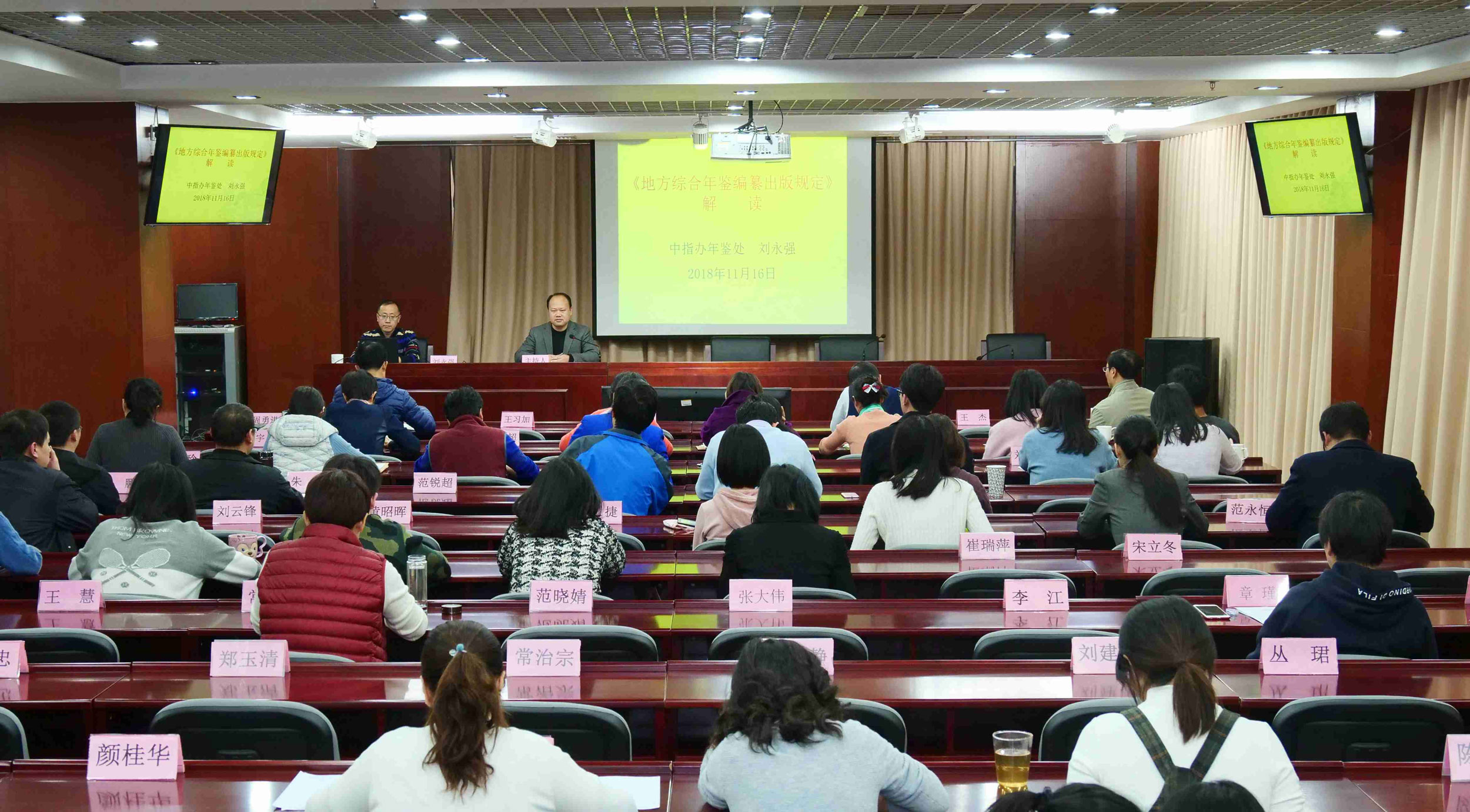 2018年11月16日下午,由中國地方志指導(dǎo)小組辦公室(以下簡稱中指辦)主辦的“方志大講堂”第十九講在國家方志館一樓學(xué)術(shù)報告廳舉行。中指辦年鑒處處長、副研究員劉永強(qiáng)主講,講座題目為“《地方綜合年鑒編纂出版規(guī)定》解讀”,中指辦科研處副處長、副研究員周勇進(jìn)主持講座并點(diǎn)評。
