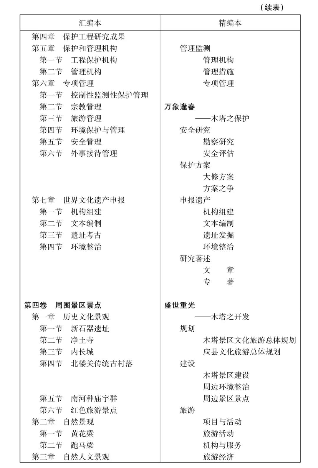 其一,全志主線。主線問題,宏觀上涉及如何擺布各板塊之間的相互關(guān)系,先說什么,后說什么,有一個基本線索,必須符合邏輯,同時尊重閱讀習慣;微觀上,每一個板塊內(nèi)部先記什么,后記什么,脈絡(luò)怎么展開,沿什么樣的思路展開,必須清晰。分析讀者心理,了解木塔,一般應(yīng)是從歷史到現(xiàn)在,先遠望后近觀,再深入其中細看。精編本之主線大致即按有關(guān)木塔之興建、修繕、保護、開發(fā)、研究這條主線,由遠而近,由外而內(nèi),逐步展開的。