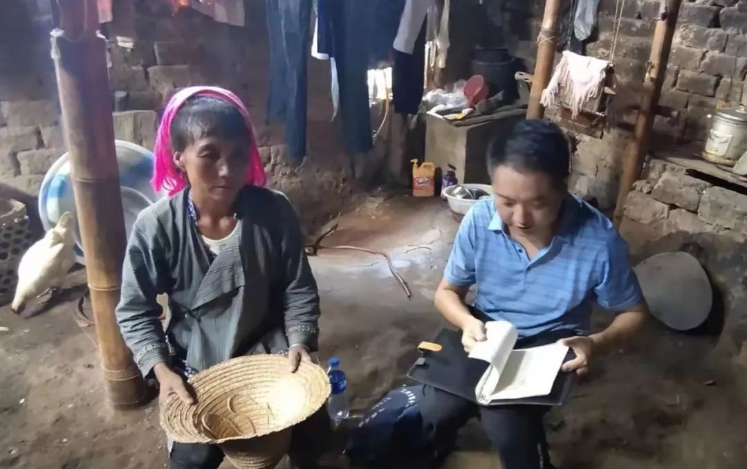 吳志宏(右)在核查建檔立卡貧困戶信息