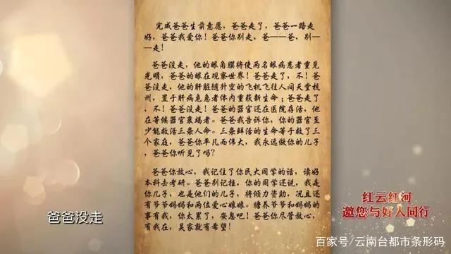 2019年11月5日,49歲的紅河州扶貧干部吳志宏突發(fā)疾病,幾經(jīng)轉(zhuǎn)診,來(lái)到昆明,但因病情過(guò)重,生命難以逆轉(zhuǎn)。在吳志宏的身體機(jī)能尚未完全喪失之時(shí),父親吳家云做出了一個(gè)艱難的決定,他要捐獻(xiàn)兒子所有能用的器官。器官捐獻(xiàn)協(xié)調(diào)員:“這個(gè)是器官捐獻(xiàn)的,是剛剛我跟你們說(shuō)的,叫做人體器官捐獻(xiàn)的告知書(shū),就是我詳細(xì)跟你們介紹的那些內(nèi)容,如果你們沒(méi)有疑問(wèn)就在這里簽上名字。”