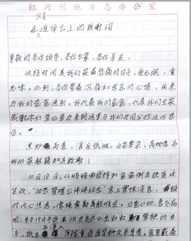 吳志宏兒子親筆寫(xiě)下的悼詞