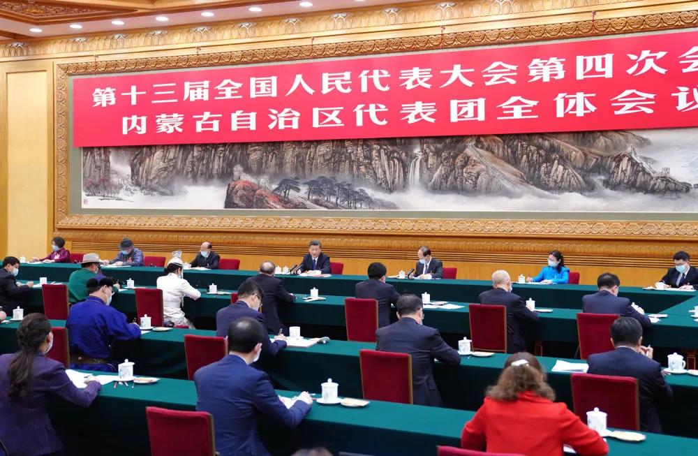 3月5日,中共中央總書記、國家主席、黨中央軍委主席習(xí)近平參加十三屆全國人大四次會(huì)議內(nèi)蒙古代表團(tuán)的審議。新華社記者 鞠鵬 攝
