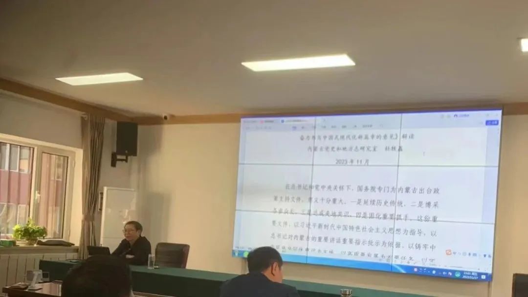 從11月17日開始,自治區(qū)黨委黨史和地方志研究室全面開展“感黨恩、聽黨話、跟黨走”宣講。自治區(qū)宣講團(tuán)成員、自治區(qū)黨委黨史和地方志研究室主任杜軼鑫為全室干部全面系統(tǒng)深入講解《國務(wù)院關(guān)于推動(dòng)內(nèi)蒙古高質(zhì)量發(fā)展奮力書寫中國式現(xiàn)代化新篇章的意見》。