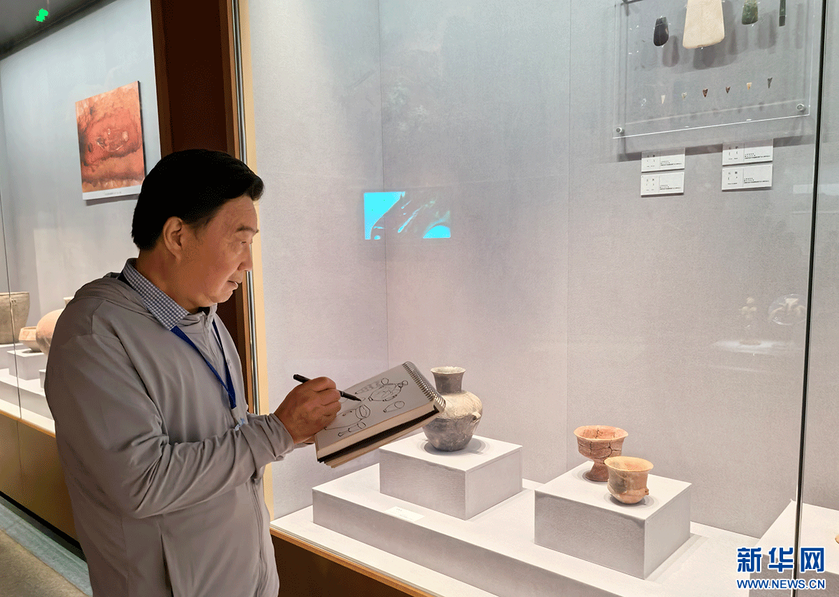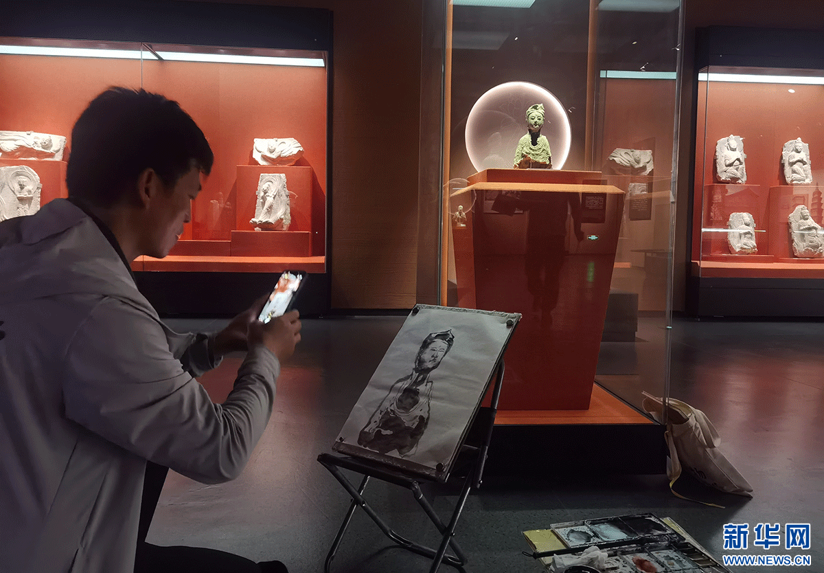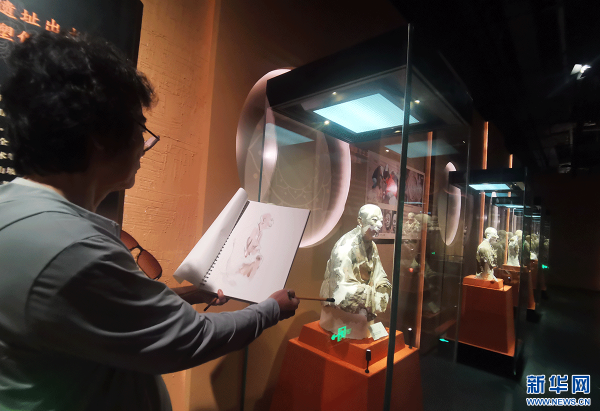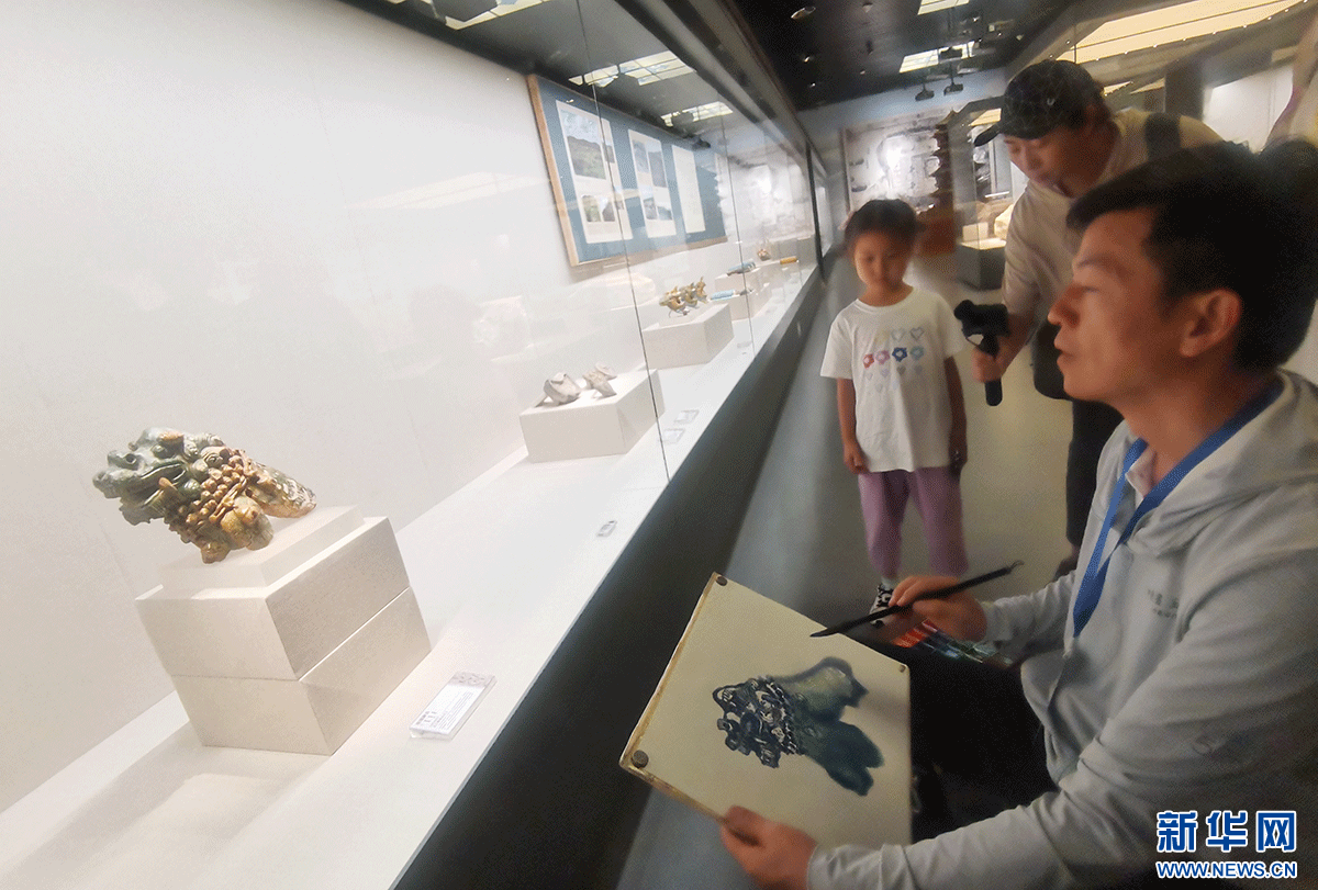7月30日,畫家蔣威在赤峰博物院進(jìn)行創(chuàng)作。新華網(wǎng)發(fā)