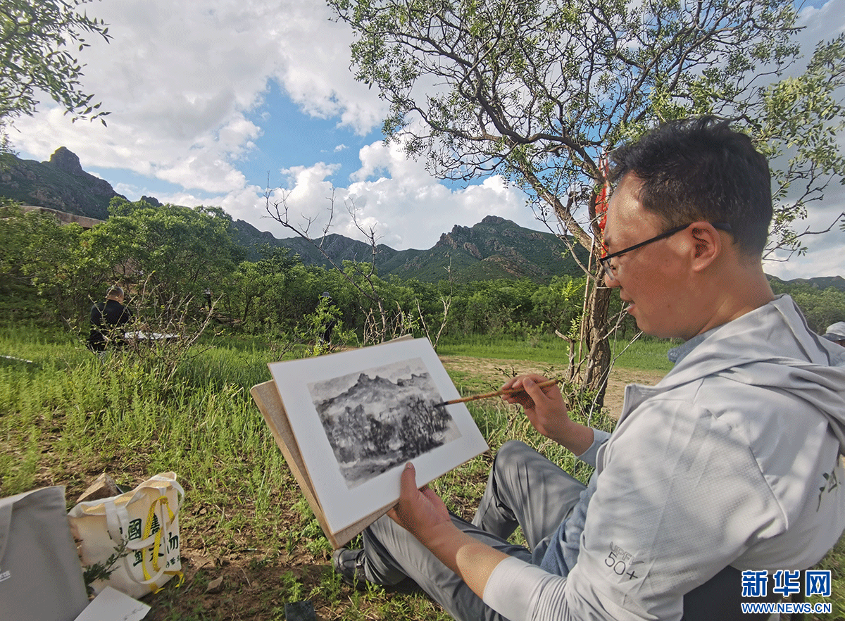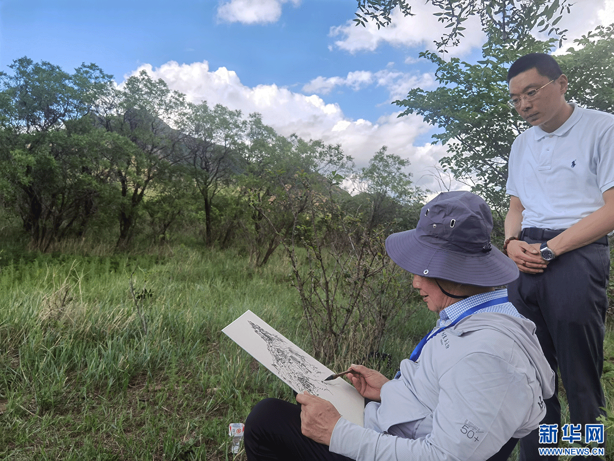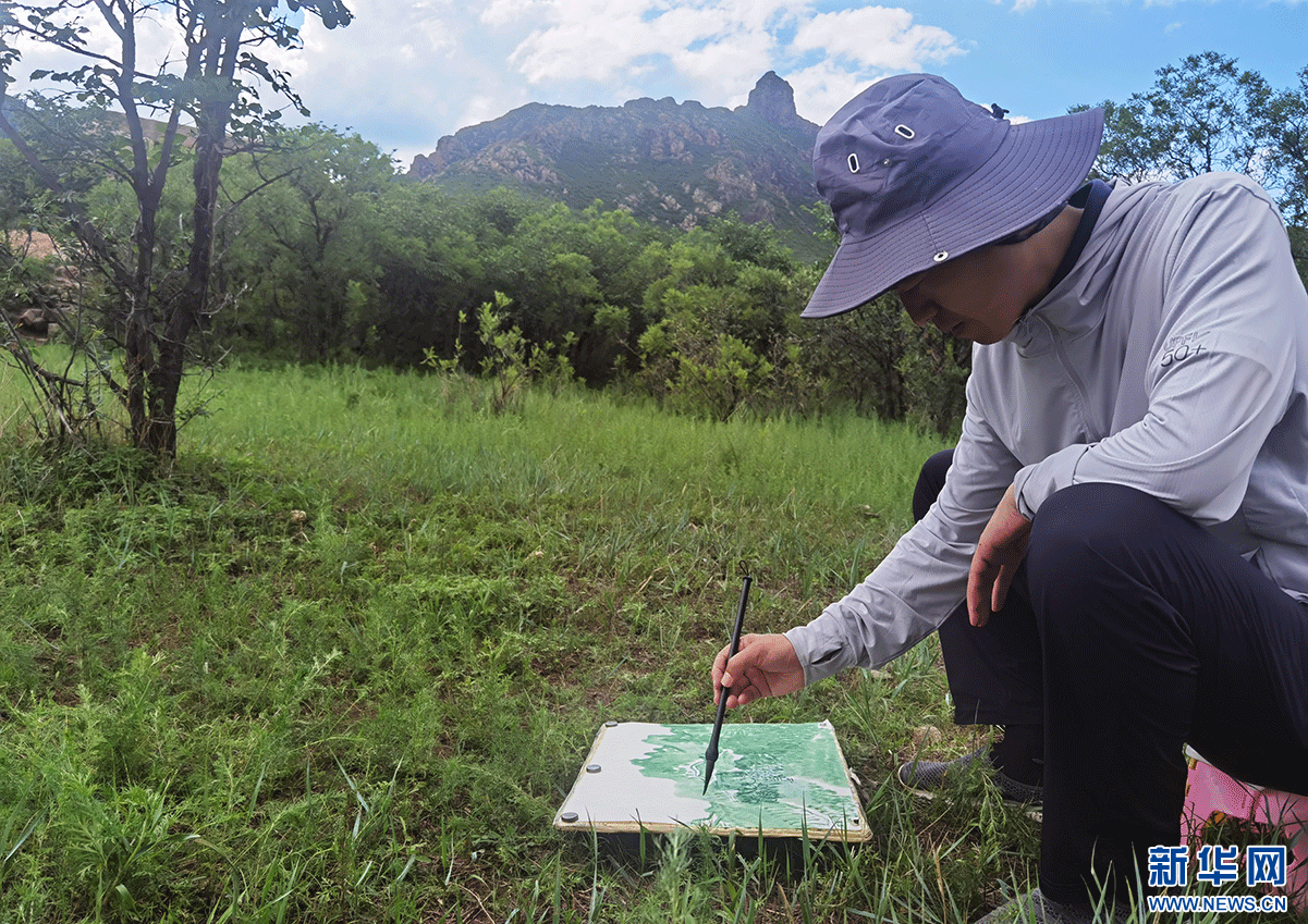 7月28日,畫家王躍奎在赤峰市巴林左旗遼祖祖州城遺址完成的寫生作品。新華網(wǎng)徐紅梅 攝